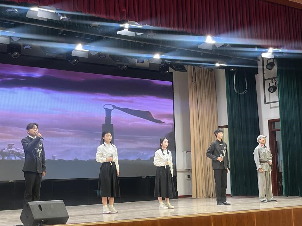 作品《回溯抗战烽火 砥砺国防新程》讲述了滕州战役中川军将领王铭章将军率部浴血奋战、壮烈殉国的英雄事迹。同学们或慷慨激昂或深情款款,用语言描绘了战争的惨烈与将士的英勇,更通过服装、道具、音视频及舞台动作,构建起沉浸式的历史场景,歌颂了革命先辈视死如归、精忠报国的崇高精神。